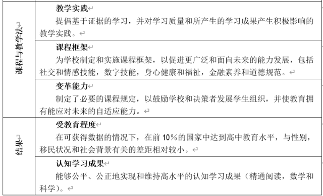 但是,关于定义高水平教育体系的问题仍有待讨论。各国还希望确保自己的教育体系做好充分的准备并为未来做好打算。不确定的未来对当今的教育体系提出了挑战,必须增强其为未来做好准备的能力。今天为高质量的教育体系做出贡献的东西,明天不一定是可持续的。在一个瞬息万变的社会中,教育体系如何使学生为将来的蓬勃发展和创建未来做好准备?